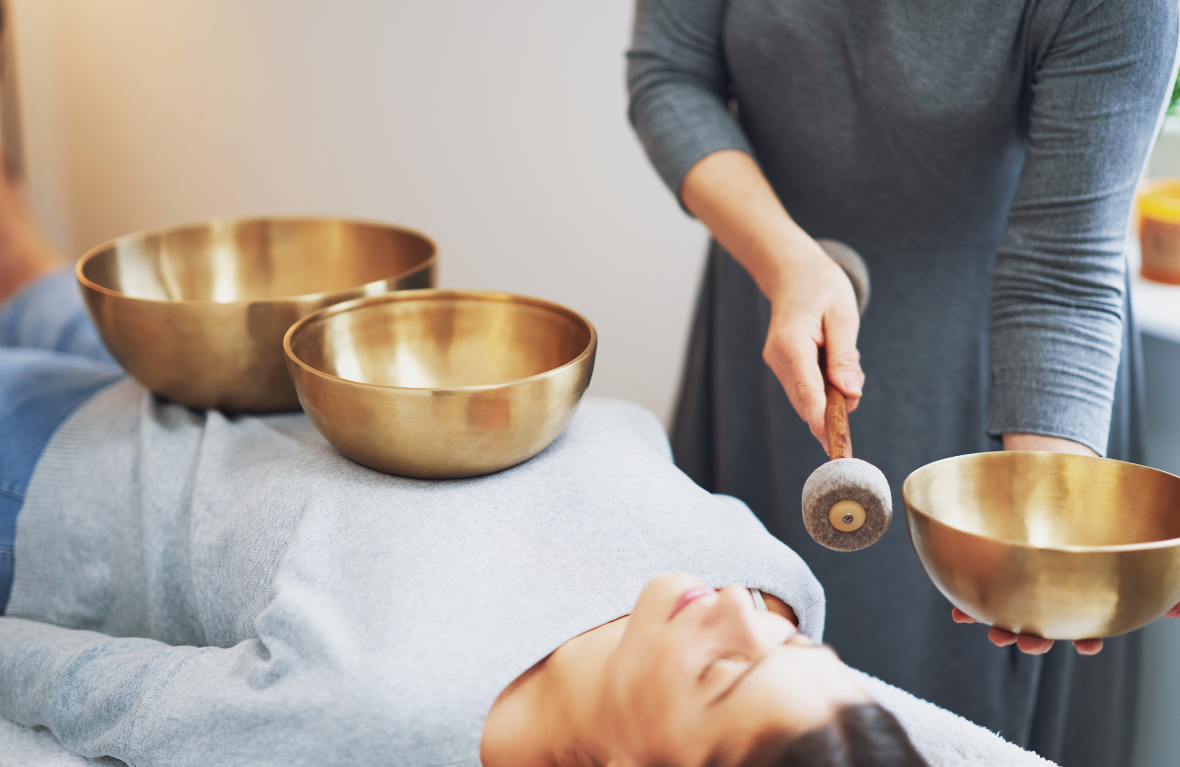In a session like a Group Sound Bath, you will lie comfortably in a reclining position. Our practitioner will then use a variety of instruments to create soothing vibrations and sounds that guide you into a meditative state. For Sound Massage Therapy, singing bowls are gently placed on or near your body to create targeted therapeutic vibrations.